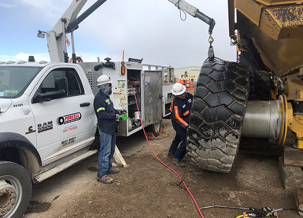 Purcell OTR focus is assisting our clients in achieving the best possible operating cost. We offer a wide range of services to help a mine site achieve their production goals and minimize the cost of production. Tire Service Technicians are available 24 X 7 providing complete coverage, servicing all tire activities. They are assigned to specific shifts or are on call as needed.